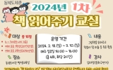 대통령실 최준규 기자2024. 01.23[뉴스킹]제주도교육청 동녘도서관은 다양한 주제의 책을 읽어주어 독서에 대한 흥미를 이끌고 유아기부터 독서 습관 형성에 도움을 주기 위해‘2024년 1차 책 읽어주기 교실’을 운영한다. 프로그램 운영 기간은 2월 18일부터 3월 10일까지 매주 일요일 오후 2시부터 4시까지(총 4회, 회당 2시간) 6~7세(만 나이 기준), 예비 초등학생 1~2학년 15명을 대상으로 김미영 동화구연가의 지도로 다양한 주제의 책을 읽어주고 나서 책 놀이 및 미술 등 독후 활동을 진행한다. 프로그램 수강생 모집 기간은 1월 24일 오전 9시부터 ...