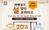 [뉴스킹]경기도와 경기도농수산진흥원이 설을 맞이해 농특산물과 선물세트를 저렴하게 구매할 수 있는 ‘경기도농특산물 설 판촉전’을 온오프라인 동시에 진행한다. 이번 행사에는 도내 우수 생산농가 100여 곳이 참여한다. 온라인플랫폼 ‘마켓경기’에서는 23일부터 2월 5일까지 400여 상품에 대해 최대 2만원 할인이 가능한 20% 할인 판매 행사를 진행한다. 구매를 원하는 소비자는 마켓경기 누리집에서 총 3,500장의 할인쿠폰을 선착순 내려받을 수 있다. 또한 친환경 유통센터 내 곤지암 로컬푸드 직매장에서 ‘근하신뇽(龍) 설맞이 할인전...