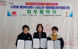 [뉴스킹]부산 동구 수정5동행정복지센터는 22일, 사단법인 미소원, 희망마을 사회적협동조합과 업무협약(MOU)을 체결했다. '2024 따뜻한 동네, 소통과 나눔을 위한‘ '수5천사 그린복지등대지기' 사업 일환으로 추진된 이번 협약을 통해 중·장년 1인가구, 복지위기가구 지원 및 지역주민 복지증진을 위해 상호 협력하기로 했다. 한편 사단법인 미소원은 2011년 설립된 재가봉사단체로 지역사회의 취약계층을 위한 나눔활동 및 봉사활동을 꾸준히 이어오고 있어 평소 지역사회에 귀감이 되고 있으며, 희망마을 사회적협동조합은 생활물품을 비롯...
