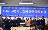 [뉴스킹]“완주군민의 분열과 갈등을 조장한 우범기 시장은 지금 당장 완주군민 앞에 고개 숙여 사과하고 같은 일을 반복하지 않을 것을 약속하라!” 뜬금없는 우범기 전주시장의 일방적인 완주·전주 통합추진에 대해, 완주군의회 서남용 의장이 날선 비판의 목소리를 냈다. 22일 완주군의회에 따르면 이날 완주군 브리핑룸에서 서남용 의장을 비롯해 완주군의회 의원 등 30여 명이 참석한 가운데 완주·전주 통합론에 대한 성명서를 발표했다. 서남용 의장은 “우범기 시장은 올해 초 신년 기자간담회를 통해 마치 완주군에 선전포고라고 하듯 완주·...