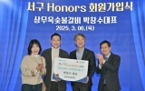 연예 온라인뉴스팀2025. 03.07[뉴스앤저널]광주광역시 서구는 6일 서구청 1층 기부자 명예의 전당에서 광주사회복지공동모금회와 함께 상무옥숯불갈비 박창수 대표의 서구아너스 가입식을 개최했다. 이번 가입식에서 박창수 대표는 5년간 매년 600만원씩 총 3천만원을 후원하기로 약정했다. 이 후원금은 ‘복지 사각지대 없는 12달이 행복한 착한도시 서구’조성을 위해 쓰일 예정이다. 박 대표는 2019년부터 서구와 협약을 맺고 저소득 청소년들의 재능개발과 꿈을 지원하는 ‘희망플러스 인재육성 사업’에 꾸준히 참여해왔다. 그는 “사업을 통해 얻은 수익을 지역사회에 ...