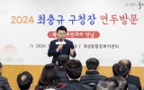 [뉴스킹]최충규 대덕구청장이 갑진년 새해 주요 정책을 설명하고 주민 불편사항을 청취하기 위해 시작한 연두방문을 마무리했다. 대전 대덕구는 지난 8일 오정동을 시작으로 18일까지 12개 동을 방문, 구민과의 대화를 성황리에 마쳤다고 밝혔다. 이번 연두 방문은 숙원사업 해결을 위한 제안을 비롯해 일상에서 겪는 사소한 불편 상황 등 주민들의 다양한 의견을 청취하는 진솔하고 격의 없는 소통 시간을 가졌다. 최 구청장은 올 한 해 △미래지향적 도시기반 마련 △생활인프라 확충 △안전하고 품격 있는 문화도시 조성 △촘촘한 사회복지망 구축 ...