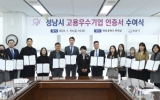 최준규 기자2024. 01.19[뉴스킹]성남시는 150명의 시민을 신규 채용한 16개사를 고용우수기업으로 선정했다고 19일 밝혔다. 시는 이날 오후 4시 시청 7층 회의실에서 해당 기업 실무책임자들이 참석한 가운데 고용우수기업 인증서(유효기간 2년)와 현판 수여식을 했다 . 고용우수 인증 기업은 ㈜인터마인즈, ㈜브레인벤쳐스, 인빅㈜, ㈜아름게임즈, ㈜트루본, ㈜미림씨스콘, ㈜이노튜브, ㈜티맥스비아이, ㈜티맥스클라우드, ㈜티맥스티베로, ㈜아이스크림미디어, 인포그랩 유한회사, ㈜플랙스, ㈜플라츠, ㈜아름담다, 세이프웨어㈜다. 이들 기업은 적게는 2명, 많게는 ...