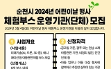 순천 최준규 기자2024. 01.19[뉴스킹]순천시가 2024년 5월 4일에 개최될‘제102회 어린이날 행사’의 성공 개최를 위해 미래기술, 애니메이션 등 각종 체험 프로그램을 운영할 기관(단체)를 모집한다고 밝혔다. 공고일 기준 광주 또는 전남 소재 아동 관련 업무나 행사에 참여하고 추진한 실적이 있는 아동 관련 기관, 비영리 법인, 민간 단체 등이 신청이 가능하며, 모집기한은 2월 1일까지이다. 모집규모는 8개 부스 내외이며, 미래기술(AI, 로봇, VR 등), 애니메이션, 장애 인식개선 등 다양한 분야의 체험 프로그램을 모집한다. 시 관계자는“순천의 미래인...