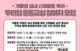 정치일반 최준규 기자2024. 01.19[뉴스킹]예산군보건소는 관내 6∼9세 아동을 보육하는 가정을 대상으로 ‘우리집 운동교실’ 참여자를 선착순 모집한다. 모집 기간은 1월 22일부터 26일까지로 참여 신청은 보건소 홈페이지의 홍보광장에 공지사항 내 홍보 안내문에 첨부된 정보무늬(QR코드)로 접속 후 참여신청서를 작성하면 되며, 자세한 사항은 건강증진팀으로 문의하면 된다. 올해 처음 추진되는 우리집 운동교실은 TV나 컴퓨터, 스마트폰 등 앉아서 생활하는 시간의 증가와 신체활동의 필요성에 대한 인식과 참여의 기회 감소로 어린이 비만이 증가함에 따라 온 가족이 함께 즐길...