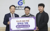 대통령실 최준규 기자2024. 01.12[뉴스킹]광주 동구에 새해부터 지역발전을 이끌어갈 우수 인재 육성을 위한 장학금이 잇따라 기탁돼 지역사회에 훈훈한 감동을 주고 있다. 동구 새마을부녀회와 계림1동 푸른길시작마을 주민협의체에서 각각 100만 원과 50만 원 등 총 150만 원의 장학금을 기탁했다. 새마을부녀회는 지난 한 해 동안 자원재활용 행사를 통해 얻은 수익금 전액과 회원 모금으로 조성한 100만 원을, 푸른길시작마을 주민협의체는 취약지역 생활 여건 개조 사업 일환으로 ‘푸른온리마켓’을 운영하며 얻은 음식 판매 수익금 50만 원을 전달했다. 임택 동구청장은...