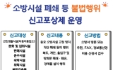 광주메인 최준규 기자2024. 01.12[뉴스킹]전남소방본부가 비상구 폐쇄 등 소방시설의 불법행위에 대한 신고포상제를 연중 운영한다. 불법행위 신고포상제는 비상구 폐쇄·잠금, 위법한 소방시설을 신고하면 포상금을 지급하는 제도이다. 건물 관계인의 자율 소방 안전관리 체제를 유도해 소방시설 유지관리에 반하는 위법행위를 원천적으로 근절하고 안전 문화 의식과 인명피해를 최소화하는 것이 목적이다. 신고포상제 대상 시설은 근린생활시설, 문화 및 집회시설, 판매시설, 운수 시설, 숙박시설, 위락시설, 판매 또는 숙박시설이 포함된 복합건축물, 의료시설, 노유자시설이다. 피난...