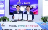 광산구 최준규 기자2024. 01.11[뉴스킹]전북도가 도내산 우수 농수축산 식품들의 미국내 수출 판로를 더욱 넓힐 수 있게 됐다. 도에 따르면 전략산업의 미래 가치 모색을 위해 미국을 방문 중인 김관영 도지사 등 출장단은 10일(현지시간) 라스베이거스 현지에서 미국 홈쇼핑월드 Rick Kim 대표 등이 참석한 가운데 100만불 규모의 전북 농수산식품 수출 업무협약(MOU)을 체결했다고 밝혔다. 아울러 1차 발주로 10만8천불의 주문이 곧바로 이어져 업무협약 이행력이 높아질 것으로 기대되고 있다. 이는 지난해 미국 현지 유통업체인 한남체인과 H마트에 이어 세...
