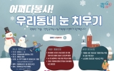 최준규 기자2024. 01.10[뉴스킹]영암군이 3월까지 ‘우리 동네 눈 치우기’ 캠페인을 실시한다. 눈 치우기와 자원봉사를 결합한 이번 캠페인은, 영암군민의 참여로 눈 피해 최소화, 생활 불편 해소, 보행자 안전 확보 등을 모색하는 활동. 집 앞과 가게, 마을 등 자신이 사는 곳의 쌓인 눈을 치우는 사진이 담긴 결과보고서를 제출하면, 최대 2시간의 자원봉사시간을 인정해주는 방식이다. 캠페인에는 영암군민 누구나 참여할 수 있고, 눈 치우기 장소는 영암 어디든 상관없다. 결과보고서에 들어갈 사진에는 휴대폰 ‘타임 스탬프’ 앱 등을 활용한 활동 시간과 ...