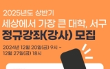 서구 온라인뉴스팀2024. 12.18[뉴스앤저널]광주광역시 서구는 오는 27일까지 ‘세상에서 가장 큰 대학, 서구’2025년 상반기 정규강좌 강사를 모집한다. 서구의 평생학습 브랜드 사업인 세큰대는 주민의 지속 성장을 위해 근거리 생활권에서 교육받을 수 있는 동 캠퍼스 운영 및 특급배송 배달강좌 런투유 등 다양한 사업을 추진하고 있으며 전남대, 광주보건대, 조선이공대 등 지역대학과 연계․협력을 통해 전문성 있는 교육을 무료로 제공해 주민들의 큰 호응을 얻고 있다. 모집은 시민참여·인문사회·문화예술학과 총 3개 학과, 20개 강좌를 선정할 계획으로 교육 분야에 따...