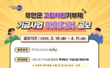 무안 온라인뉴스팀2025. 03.11[뉴스앤저널]전남 무안군은 오는 4월 11일까지 전 국민을 대상으로 고향사랑기부제 기금사업 아이디어 공모전을 진행한다. 이번 아이디어 공모전은 12·29 여객기 참사로 인해 침체한 지역경제를 활성화하고 기부자들의 공감을 얻을 수 있는 기금사업을 발굴하고자 전 국민을 대상으로 하여 공개 모집으로 진행된다. 공모 분야는 ▲사회적 취약계층 지원 및 청소년 육성‧보호 ▲지역 주민의 문화‧예술‧보건 등 증진 ▲시민참여, 자원봉사 등 지역공동체 활성화 지원 ▲그 밖에 주민의 복리 증진에 필요한 사업이다. 참가 대상은 무안군의 발전에 관심...