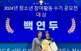 광산구 온라인뉴스팀2024. 12.02[뉴스앤저널]거창군은 지난 29일 서울 SKY31 컨벤션센터에서 개최된 ‘2024년 청소년 참여활동 수기 공모전’에서 거창군청소년수련관 소속 백연두 학생(혜성여중3)이 대상인 여성가족부장관상을 수상했다고 밝혔다. 이번 공모전은 여성가족부 주최하고, 한국청소년활동진흥원에서 주관하는 행사로 ‘청소년 참여활동을 통한 변화와 성장’이라는 주제로 청소년들의 우수한 참여활동 사례를 발굴하기 위해 마련됐다. 백연두 학생은 거창군청소년참여위원회 ‘we-chi’의 위원장으로 활동하며 청소년 정책 발굴과 다양한 참여 활동에서의 공로를 인정받아 수...