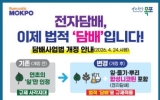 해남 전대상 기자2026. 04.09[뉴스앤저널]목포시는 '담배사업법' 개정 시행에 따라 액상형 전자담배가 공식적인 규제 대상에 포함됐음을 알리고 시민들의 주의를 당부했다. 개정된 '담배사업법'은 기존 ‘연초의 잎을 원료로 한 제품’으로 한정됐던 담배의 범위를 ‘연초 또는 니코틴을 원료로 제조한 제품’까지 확대했다. 이에 따라 액상형 전자담배도 일반 담배와 동일하게 금연구역 규제를 받게 된다. 오는 4월 24일부터 금연구역에서는 일반 궐련뿐만 아니라 궐련형·액상형 전자담배 등 모든 담배 제품의 사용이 금지된다. 금연구역에서 흡연이 적발될 경우 '국민건강증진법...