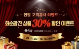 서구 온라인뉴스팀2024. 11.21[뉴스앤저널]화순군은 11월 26일부터 12월 13일까지 화순팜에서 연말 고객 감사 이벤트를 실시한다고 밝혔다. 이번 고객 감사 이벤트는 ▲할인쿠폰(전 상품 30%, 신규회원 2,000원) ▲댓글 이벤트 ▲구매후기 이벤트로 구성한다. 할인쿠폰은 화순팜 회원들에게 전 상품에 적용할 수 있는 30% 할인쿠폰을 지급하고, 신규회원 1,000명에 한하여 추가로 2,000원 할인쿠폰을 지급한다. 댓글 이벤트는 올해 가장 고마웠던 사람에게 감사 인사를 댓글로 남기거나, 상품 구매 후 후기를 남긴 회원 중 추첨을 통해 10명을 선정, 화순...