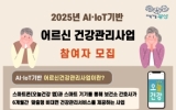 광산구 온라인뉴스팀2025. 03.03[뉴스앤저널]광주 광산구가 건강습관 개선이 필요한 65세 이상 어르신을 대상으로 인공지능(AI)·사물인터넷(IoT) 기반 어르신 건강관리 사업 신규 참여자 420명을 선착순 모집한다. 어르신 건강관리 사업은 스마트폰 앱(오늘건강)과 스마트기기(활동량계 등 4종)를 통해 보건소 전문가가 6개월간 맞춤형 비대면 건강관리 서비스를 제공하는 사업이다. 선정된 대상자는 건강 측정 결과에 따라 건강측정기기(손목활동량계, 체중계, 혈압계, 혈당계)를 선별적으로 지급한다. 또한 스마트폰에 연결된 오늘건강 앱을 통해 측정된 정보를 보건소 전문...