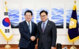 전라남도 온라인뉴스팀2024. 11.20[뉴스앤저널]김영록 전라남도지사는 20일 국회를 방문해 우원식 국회의장, 진성준 민주당 정책위의장, 안도걸·서미화 국회의원 등을 찾아가 통합의대 설립 등 지역현안 해결과 2025년 예산의 국회 증액 대상 핵심 사업을 건의했다. 전라남도 국립의과대학 설립과 관련해 지난 15일 목포대와 순천대가 지역 상생·화합과 미래 발전을 위해 통합에 합의한 것을 설명하고, 전남도가 오는 22일 정부에 ‘통합의대’를 추천하면, 정부에서 2026년도 국립의대 신설 및 정원 배정 절차를 신속히 추진하도록 적극 지원해줄 것을 간청했다. 또한 국토 남해...