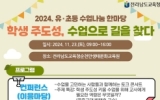교육 온라인뉴스팀2024. 11.20[뉴스앤저널]전라남도교육청이 23일 전라남도교육청순천만생태문화교육원에서 ‘2024. 유·초등 수업나눔 한마당’을 개최한다. 이번 행사는 ‘학생 주도성, 수업으로 길을 찾다’를 주제로, 학생 주도성 키움 수업 나눔과 전남교육이 나아가야 할 수업의 방향 및 교사의 역할 모색을 위한 공감의 장으로 마련된다. 행사에서는 ‘학생 주도성 키움 수업을 위한 교사에게 필요한 역량’이라는 주제 강연을 비롯해 ▲ 유·초등 공감 토크 콘서트 ▲ 체험형 수업 톺아보기(16부스) ▲ 수업에 바로 적용하는 에듀테크 체험(9부스) ▲ 수업나눔연구회·학...