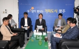 함평 전대상 기자2026. 04.21[뉴스앤저널]강기정 광주광역시장이 21일 “7월1일이면 역사가 될 광주광역시의 마지막 시장으로서 시기를 놓쳐서는 안 될 일들을 잘 마무리하겠다”면서 주요 과제로 10가지를 제시했다. 강기정 시장은 이날 기자차담회에서 “최근 광주·전남의 현장을 돌아보면서 통합의 무게를 다시 한번 실감했다”며 “시정 전반을 꼼꼼하게 살피며 광주광역시의 역사를 단단히 마무리하겠다”고 밝혔다. 강 시장은 그러면서 임기 중 추진할 10가지 주요 과제를 제시했다. ▲5·18 개헌 ▲지하철 역명 확정 ▲통합특별시 출범 준비 ▲고유가 피해지원금 지급 ▲AX ...