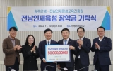 전라남도 온라인뉴스팀2024. 11.12[뉴스앤저널]전라남도는 광주은행이 글로벌 인재 양성을 위해 전남인재평생교육진흥원에 인재육성 장학금 5천만 원을 기탁했다고 밝혔다. 12일 전남인재평생교육진흥원에서 열린 기탁식에는 고병일 광주은행장, 범희승 전남인재평생교육진흥원장 등이 참석했다. 1968년 설립된 광주은행은 광주·전남 지역 대표은행으로서 소상공인 등 저신용 고객을 위한 특화 점포 ‘포용금융센터’와 임직원 봉사 단체인 ‘지역사랑 봉사단’을 운영하는 등 금융 상생경영 실천에 앞장서고 있다. 특히 지역 인재 양성에도 꾸준한 관심을 갖고, 2015년부터 올해까지 총 4...