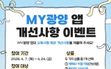 광양 이유빈 기자2026. 04.07[뉴스앤저널] 광양시는 4월 7일부터 24일까지 ‘MY광양 앱 개선사항 이벤트’를 운영한다고 밝혔다. 이번 이벤트는 ‘MY광양’ 앱 이용자의 의견을 수렴해 시스템 오류를 개선하고 사용자 중심의 기능을 강화하기 위해 마련됐다. 이벤트는 ‘MY광양’ 앱 회원이면 누구나 참여할 수 있다. 참여를 원하는 시민은 앱에 접속해 ‘나의 메뉴’에서 ‘앱 개선사항 이벤트’ 페이지로 이동한 뒤, 앱 사용 중 발견한 오류나 개선 아이디어를 작성해 제출하면 된다. 시는 참여를 독려하기 위해 선착순 300명에게 경품을 제공한다. 참여자는 ▲광...