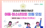 전대상 기자2026.04.17 19:22[뉴스앤저널]화순군은 ‘2026년 제8대 화순군 아동·청소년의회’ 의원 30명을 오는 4월 20일부터 5월 29일까지 공개 모집한다고 밝혔다. 신청 자격은 7세부터 18세 이하의 화순군 거주자 또는 활동자로, 초등...