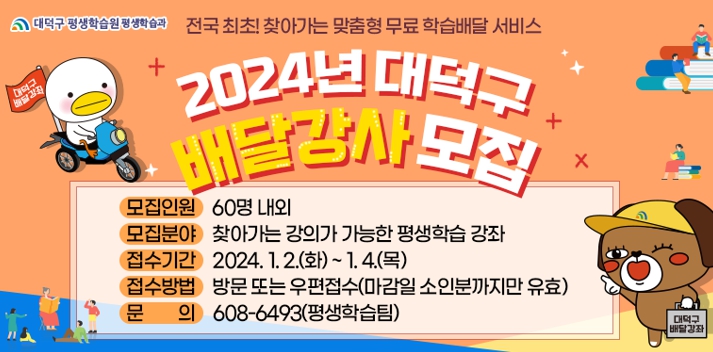 ![]() 2024년 배달강좌 강사 모집 배너 |