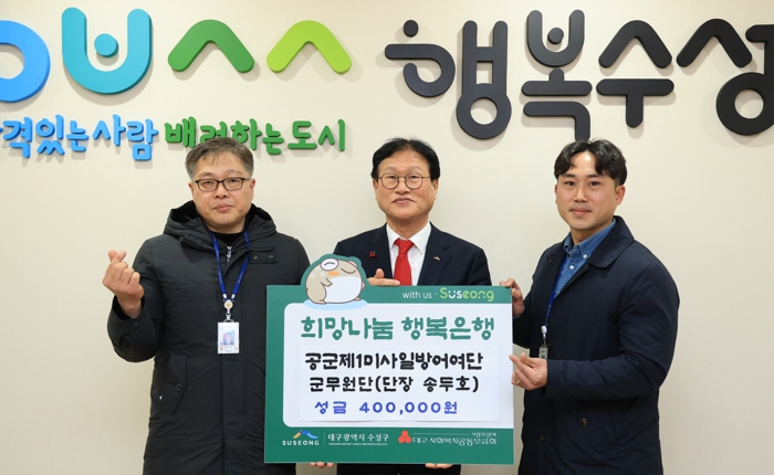 김대권 수성구청장은 “어려운 이웃을 위해 따뜻한 마음을 나누어 주셔서 감사드리며, 기탁하신 성금은 저소득층을 위한 사업에 소중히 사용하겠다”고 말했다.
