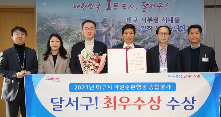 ![]() 달서구, 2023년 대구시 자원순환행정 종합평가 ‘최우수’ 선정 기념사진 |