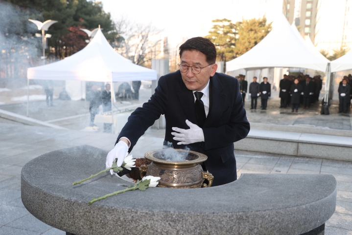 한편 이날 참배에는 김기정 의장, 이재식 부의장을 비롯한 시의원과 국회의원, 보훈 단체장 등 80여 명이 참석했다.