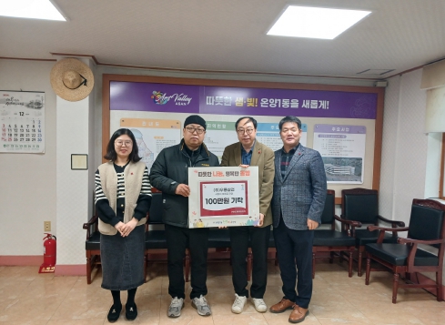 ![]() (주)우룡실업, 온양1동 행복키움에 후원금 100만 원 전달 |