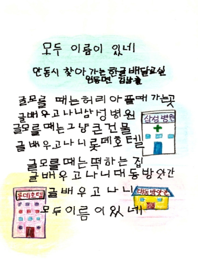 이번 시화전에는 안동시 성인 문해교육사업인 ‘찾아가는 한글배달교실’ 학습자들의 시화 작품 50여 점을 전시한다.