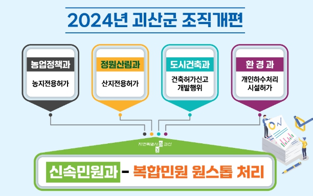 ![]() 괴산군, 미래기획국·신속민원과 신설 등 조직개편 단행 |