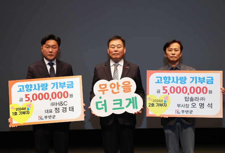 아울러 2024년 두 번째 주자로 기부를 이어간 오명석 부사장은 탑솔라(주)를 대표하여 무안군에 고향사랑기부금 500만 원을 기탁했다.
