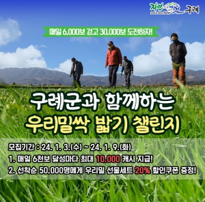 ![]() 구례군, 넛지헬스케어(주)와 함께 “우리 밀 싹 밟기 챌린지” 추진 |