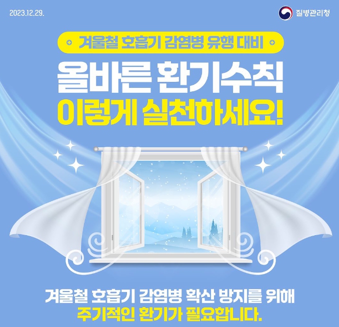 안전하고 건강한 일상을 위해 올바른 환기 수칙 실천으로 호흡기 감염병을 함께 예방해요!
