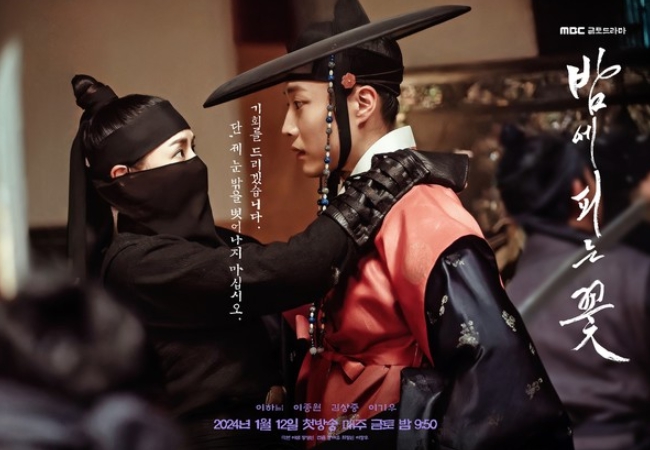 장태유 감독의 섬세한 연출과 이샘, 정명인 작가의 탄탄한 대본이 만난 ‘밤에 피는 꽃’은 ‘열녀박씨 계약결혼뎐’ 후속으로 오는 12일 금요일 밤 9시 50분에 첫 방송된다.
