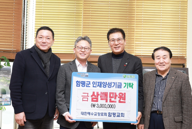 이상익 함평군수는 “지역 인재 양성을 위해 뜻을 함께 해주셔서 감사드린다”며 “기탁하신 장학금은 지역 인재들이 꿈을 향해 정진할 수 있는 환경을 조성하는데 소중히 사용하겠다”고 말했다.