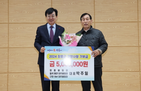 장흥볼링장 박주일 대표는 고향 발전에 힘써 달라며 작년에 이어 올해에도 500만원을 기부했다.