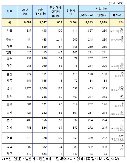 ![]() 2024년 소방안전교부세 시·도별 교부액 |