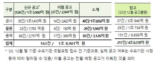 ![]() 분야별 ‘24.1월 대형사업 공고 예정 |