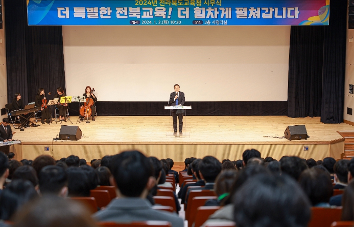 서거석 교육감은 이날 도교육청 시청각실에 전 직원이 모인 가운데 열린 2024년 시무식에서 “1월 18일 우리는 전북특별자치도교육청으로 새 출발을 하게 된다”면서 이같이 당부했다.