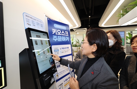 ![]() 지난달 7일 김미경 은평구청장이 서울디지털동행플라자를 방문해 로봇 카페에서 키오스크로 주문하는 모습. |