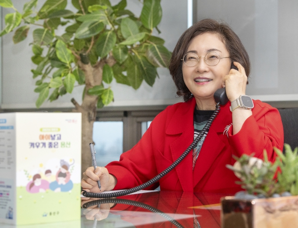 ![]() 2일 박희영 용산구청장이 갑진년 1호 용산구 출생등록 아동 부모와 전화통화를 하고 있다. |
