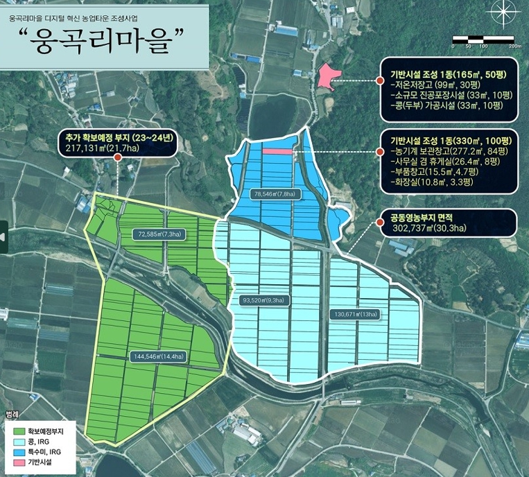 무을면 웅곡리마을 디지털혁신 농업타운은 총사업비 16억 5천만 원으로 공동영농기반조성(시설장비, 가공공장), 브랜드 개발, 마케팅 지원에 사용될 예정이다.