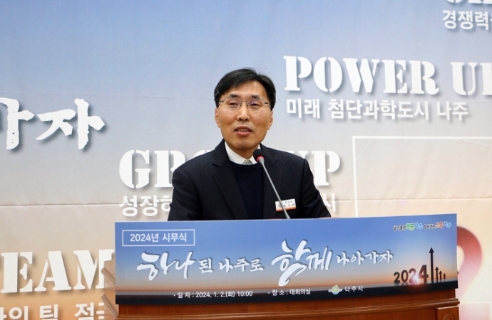 ![]() 안상현 제21대 신임 나주부시장이 지난 2일 2024년 시무식을 통해 취임 소감을 밝히고 있다. 안 부시장은 “나주의 보석같은 자원을 잘 활용해 나주발전의 잠재력을 키우는데 힘을 보태겠다”고 각오를 전했다. (사진제공-나주시) |