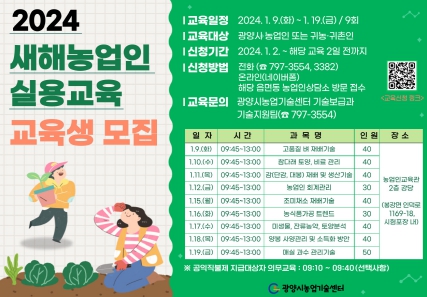 ![]() 광양시, 2024년 새해농업인 실용교육 교육생 모집 |