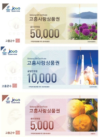 개인당 월 50만 원까지 구입 가능하고 관내 2,384개소 고흥사랑상품권 가맹점에서 사용할 수 있다.
