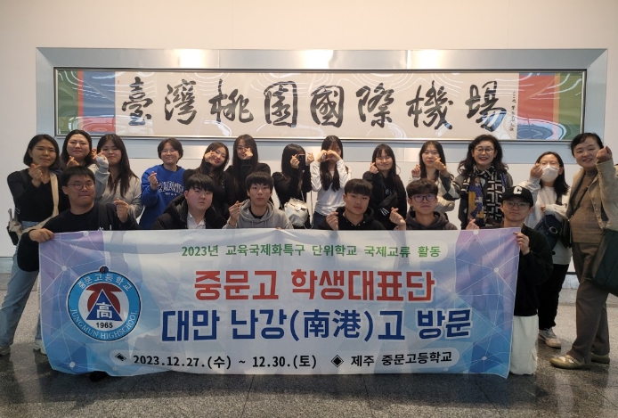 서귀포시 교육국제화특구 단위 학교 지원 사업과 중문고등학교 동문회의 지원을 바탕으로 15명의 학생이 참여했다. 두 학교 교장 선생님의 개회사로 시작된 교류 행사에서 제주의 문화와 명승지를 알리는 수업과, 대만의 음식을 배우고 만드는 수업을 진행했다. 학생들은 영어와 중국어로 제주의 전통과 명소를 대만 학생들에게 소개하며 함께 하는 국제교류를 실천했다.