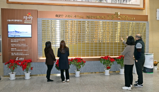 ![]() 고흥군, 고향사랑기부제 ‘고흥愛전당’ 명판 329개 부착 |