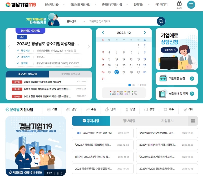 또한, 경남도 기업지원 사업의 접수 일정을 연간 달력 형태로 안내하여, 기업이 지원사업 신청기간을 놓치지 않도록 지원한다.